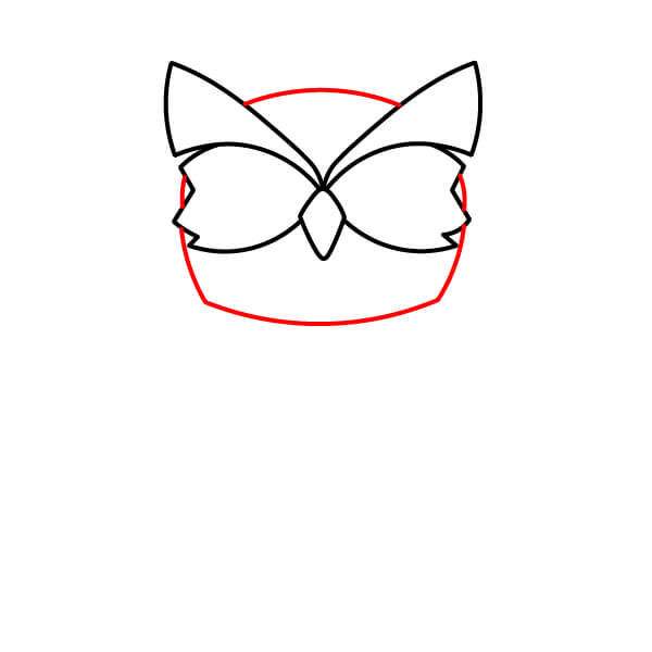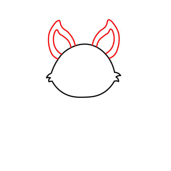 Piirrä sen korvat yläosaan kaarevilla ja terävillä viivoilla. Yksi ulospäin ja yksi sisäpuolelle.