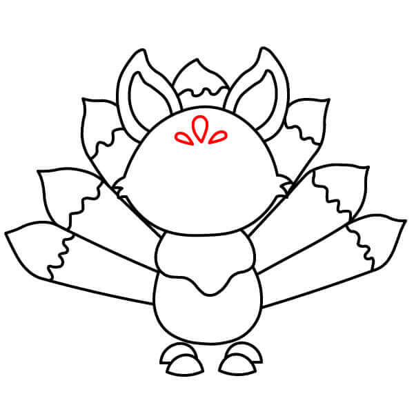 Piirrä taakse seitsemän teräväkärkistä pyrstöä. Näiden pyrstöjen tulisi levitä viuhkan tavoin.