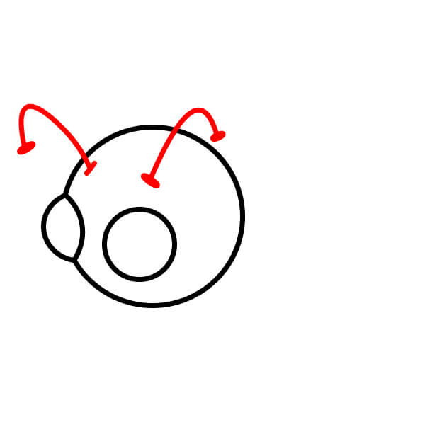 Seuraavaksi piirrä kaksi pientä ympyrää silmien luomiseksi.