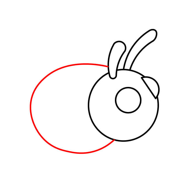 Piirrä mehiläisen ruumis suurella kaarevalla viivalla pään vasemmalle puolelle.