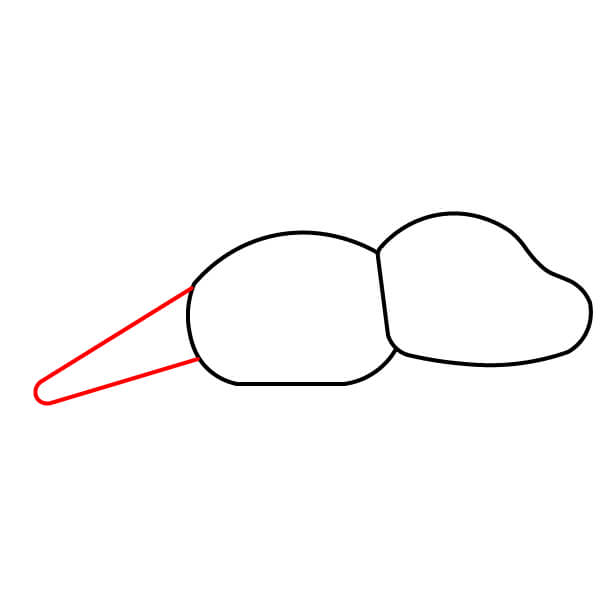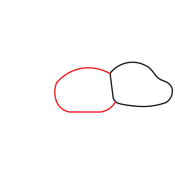Aloita piirtämällä pitkä, pyöreä muoto, joka kapenee hieman oikealle päätä kohti.