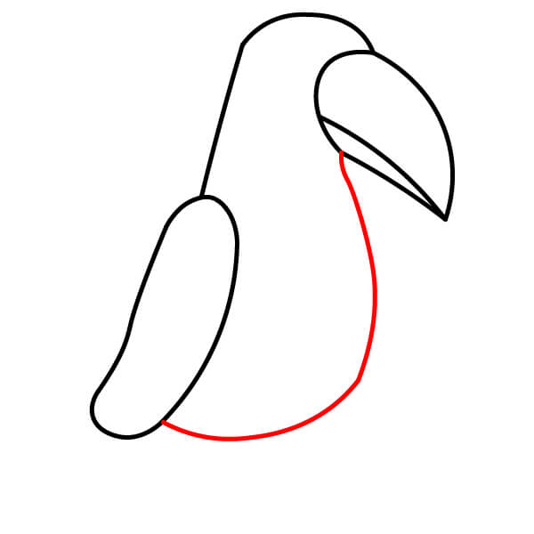 Piirrä pitkä soikea muoto linnun siiven ääriviivat muodostaen.