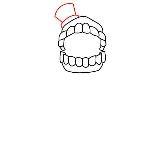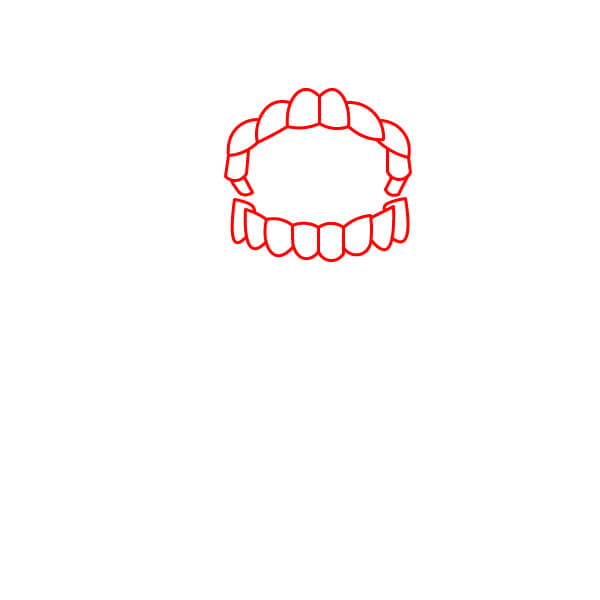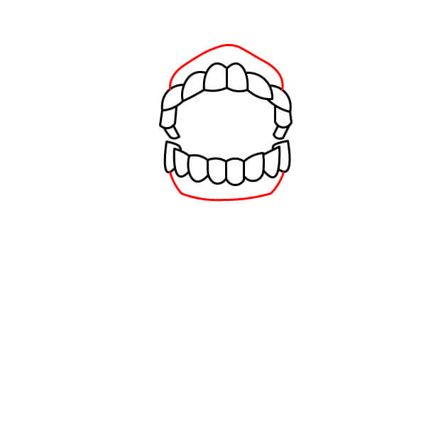 Piirrä punainen käyrä hampaiden ympärille täydentääksesi suun/pään muodon. Tämä ääriviiva kuvaa ikeniä tai ympäröivää rakennetta.