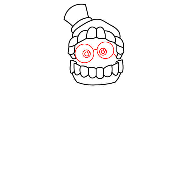 Piirrä hampaiden luomaan tilaan kaksi suurta pyöreää suojalasia, joissa on sylinteri. Piirrä kummankin suojalasin sisään pienempi ympyrä silmämunille varmistaen, että ne näyttävät suurilta ja hieman höpsöiltä.
