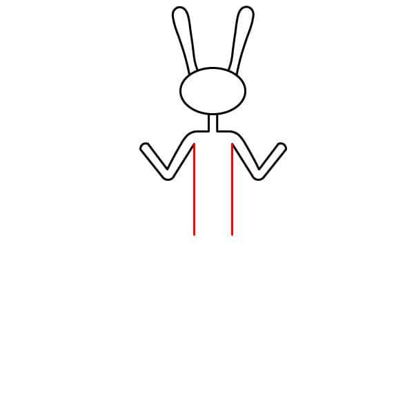 Piirrä kaksi pitkää, ylöspäin osoittavaa jäniksenkorvaa pään soikiota vasten. Niiden tulisi olla yhdensuuntaiset ja hieman kaarevat U-kirjaimen muotoon yläreunasta.