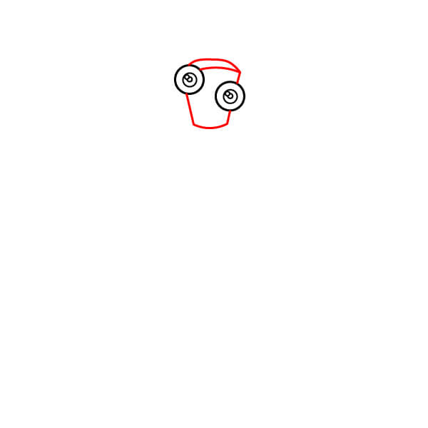 Aloita piirtämällä kaksi suurta ympyrää vierekkäin, joista kummassakin on sisällä pienempi ympyrä, joka edustaa pupilleja. Nämä edustavat Kingerin suuria, tuijottavia silmiä.