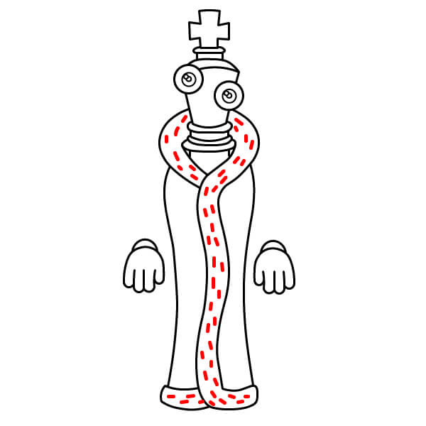 Piirrä spiraalimaisen rungon alapuolelle kaksi nauhajalkaa. Näiden tulisi olla pitkiä, kaarevia nauhaliuskoja, jotka ovat samanlaisia kuin käsivarret, ja päättyä yksinkertaisiin pyöreisiin jalkoihin. Ne on kiinnitetty spiraalimaisen rungon alaosaan.
