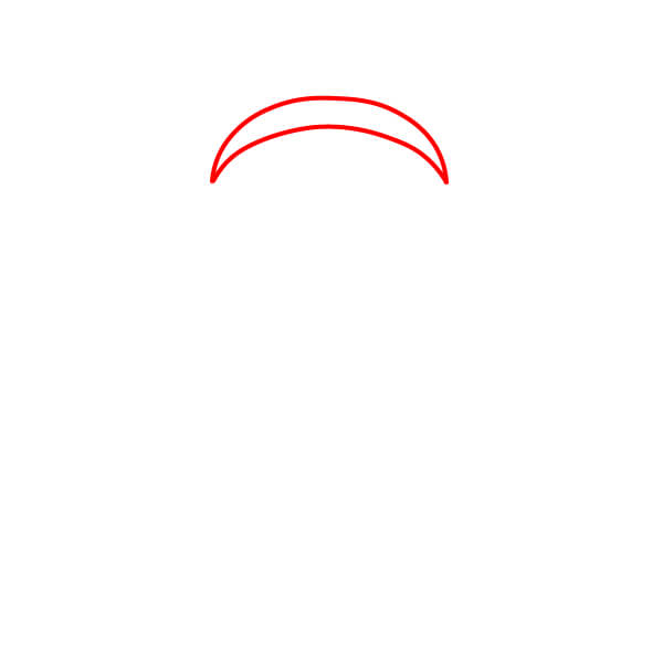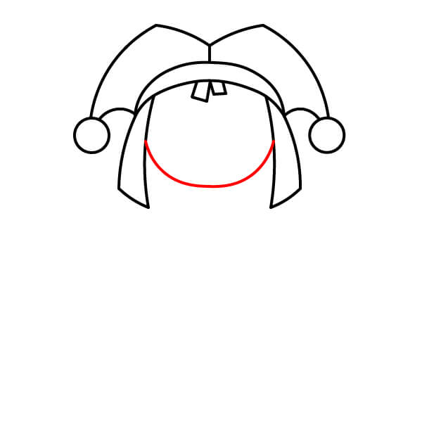 Aloita piirtämällä kaareva puolikuun muoto Pomnin klovnihatun alanauhaa varten.