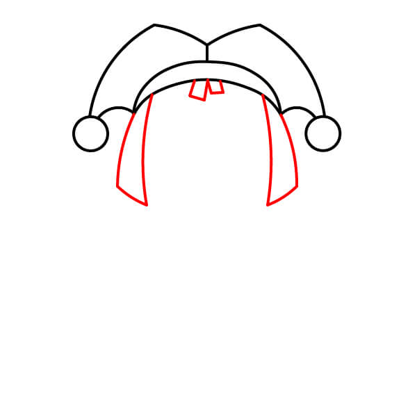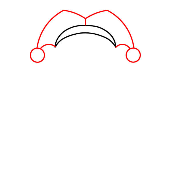 Piirrä klovnihatun yläosa, joka koostuu kahdesta terävästä, kaarevasta läpästä, jotka työntyvät ulos nauhasta. Lisää ympyrä tai kello jokaisen läpän päähän.