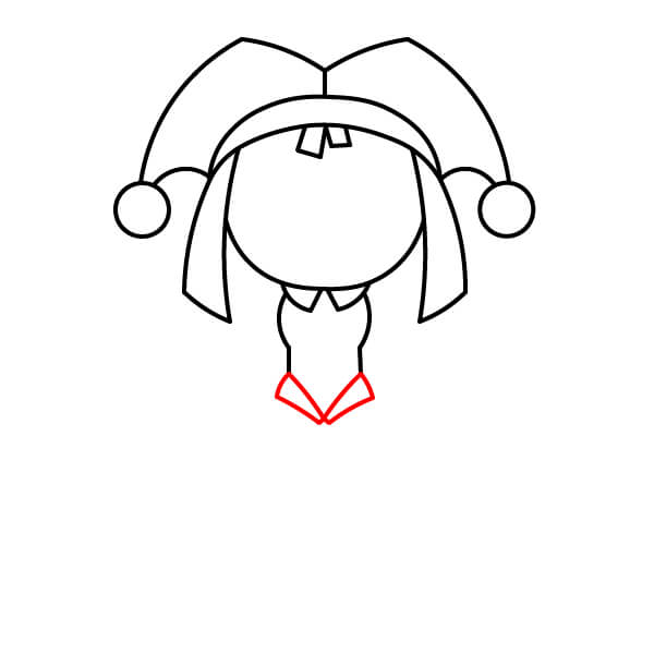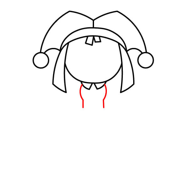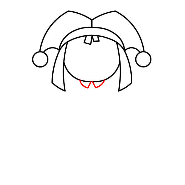 Piirrä hatun sisäpuolelle suuri soikio Pomnin päätä varten. Lisää hatun sivuläpät (jotka näyttävät kahdelta letiltä) kehystämään kasvoja. Piirrä myös kaksi pientä etuhammasta pään yläosan keskelle.