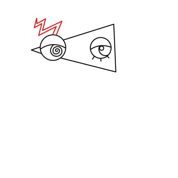 Piirrä ensimmäisen silmän yläpuolelle siksak- tai salaman muoto, joka ulottuu ylöspäin edustamaan osaa hiuksista tai pään rakenteesta.