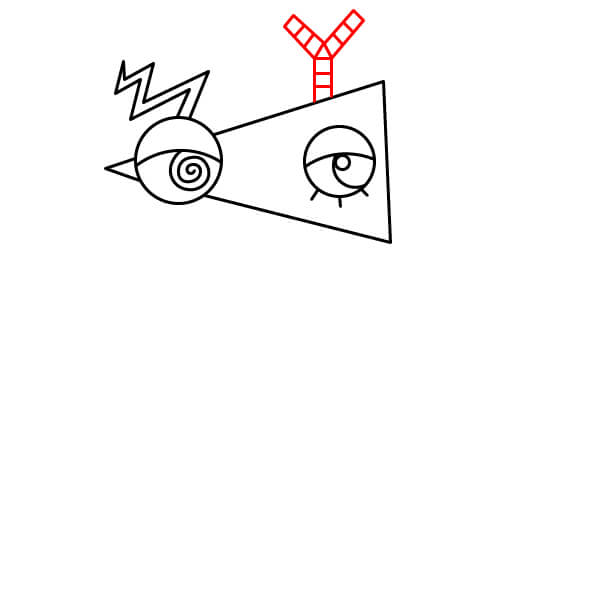 Piirrä suuri kolmio (kartio), joka ulottuu ensimmäisestä silmästä oikealle. Tämä muodostaa Zooblen pään pohjan.
