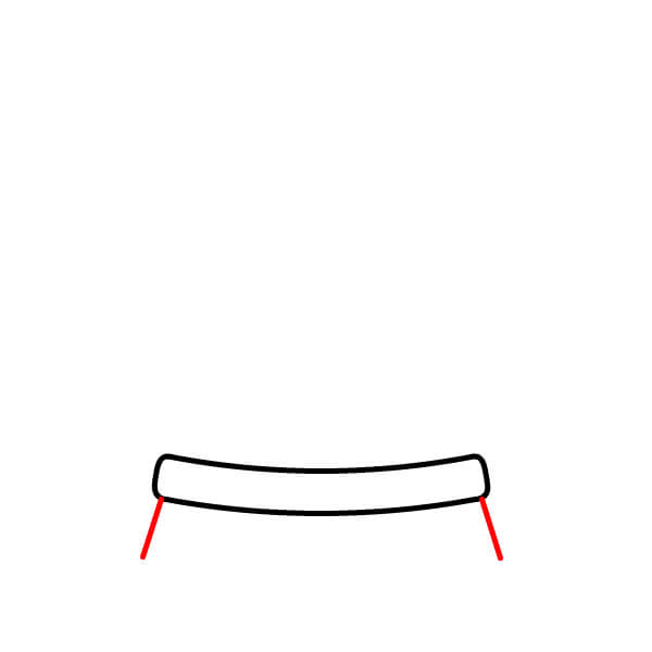 Vaihe 1: Piirrä pitkä, hieman kaareva vaakasuora muoto jalustan ylärenkaaksi.