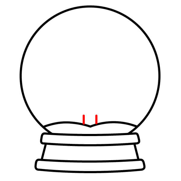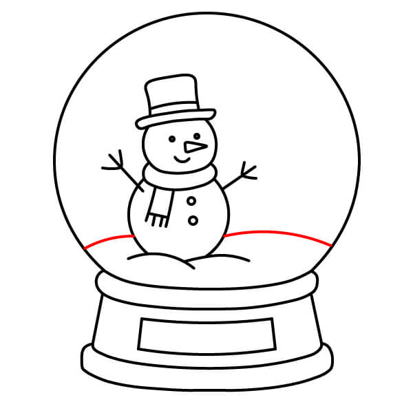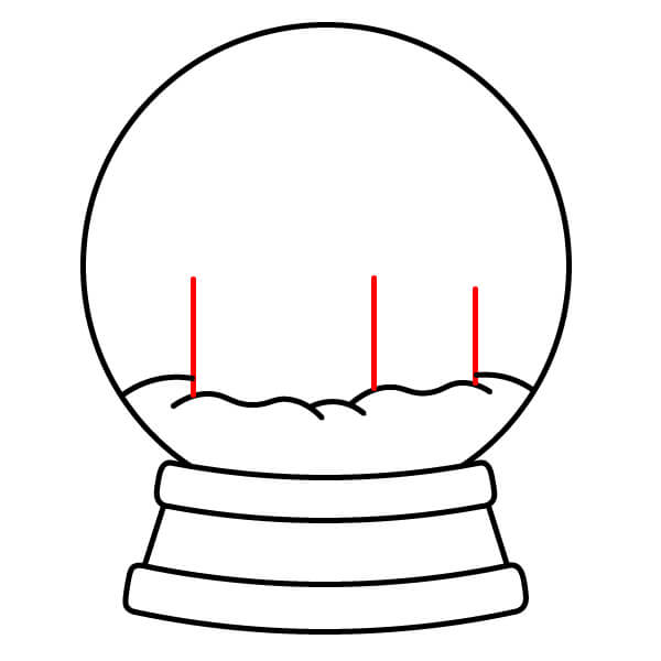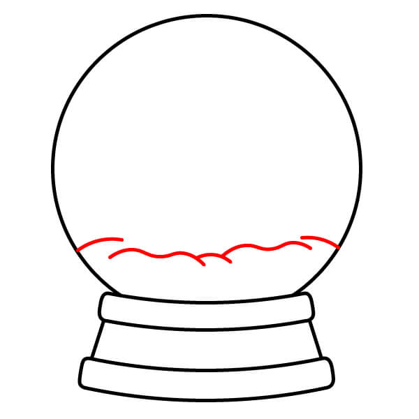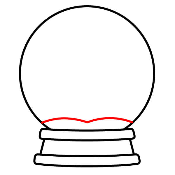 Vaihe 6: Piirrä pallon pohjan sisäpuolelle aaltoileva, epätasainen viiva kuvaamaan lumen peittämää maata, kaartuen hieman ylöspäin muodostaen pienen kukkulan.