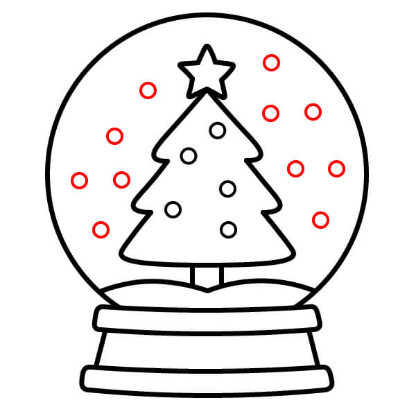 Vaihe 10: Piirrä useita pieniä ympyröitä pallon sisäpuolelle kuvaamaan putoavia lumihiutaleita.