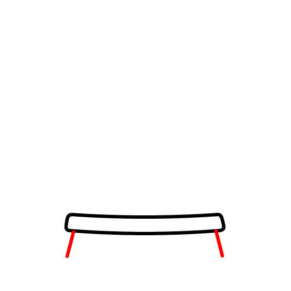 Vaihe 1: Piirrä pitkä, hieman kaareva vaakasuora suorakulmio pohjan ylärenkaaksi.