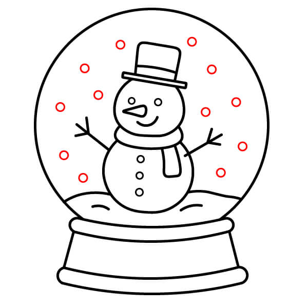 Vaihe 10: Piirrä lisää pieniä ympyröitä pallon sisällä olevan tyhjän tilan ympärille kuvaamaan putoavia lumihiutaleita.