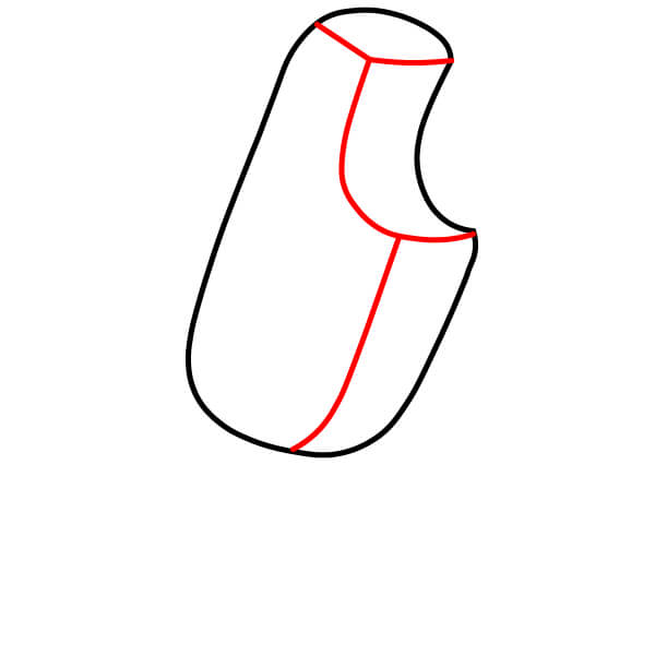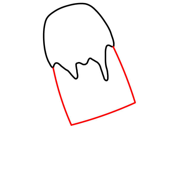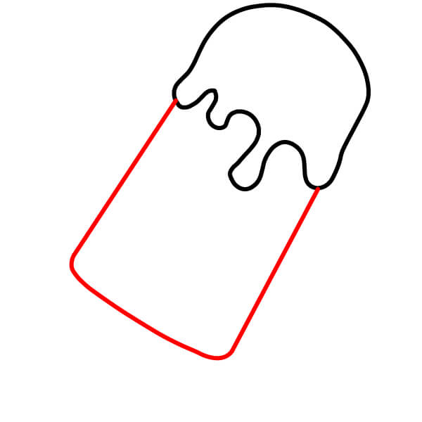 Piirrä nyt mehujään pääosa. Jatka kahta viivaa ylöspäin aiemmin piirtämäsi kaarevan viivan päistä. Kaareuta viivoja hieman sisäänpäin kohti yläosaa ja yhdistä ne pyöristetyllä yläreunalla.