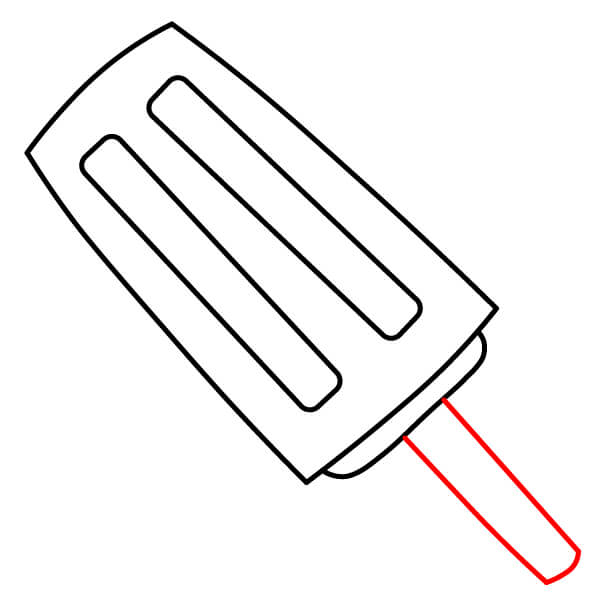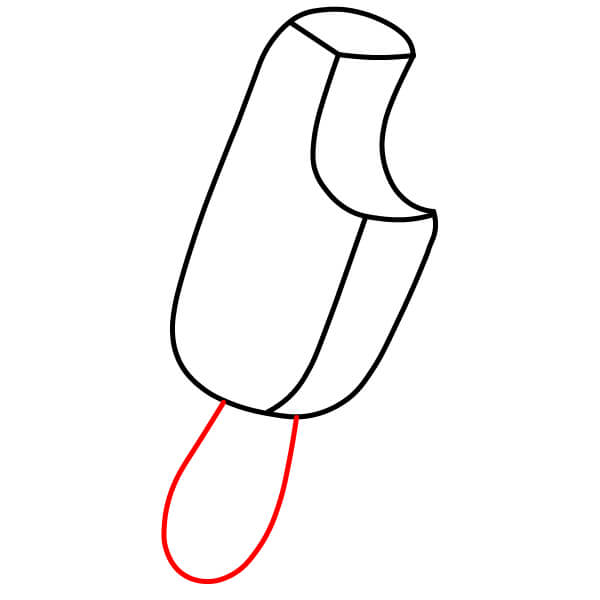 Piirrä mehujääpuikko. Piirrä mehujään aivan alaosan keskeltä kaksi rinnakkaista viivaa alaspäin ja yhdistä ne alhaalta pyöristetyllä viivalla.