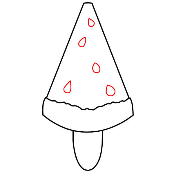 Piirrä seuraavaksi mehujääpuikko. Piirrä vesimeloniviipaleen alareunan keskeltä alaspäin U-muotoinen viiva.