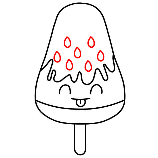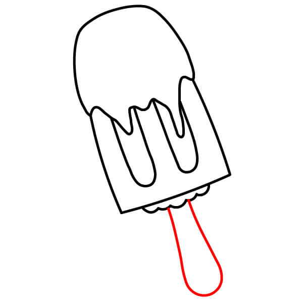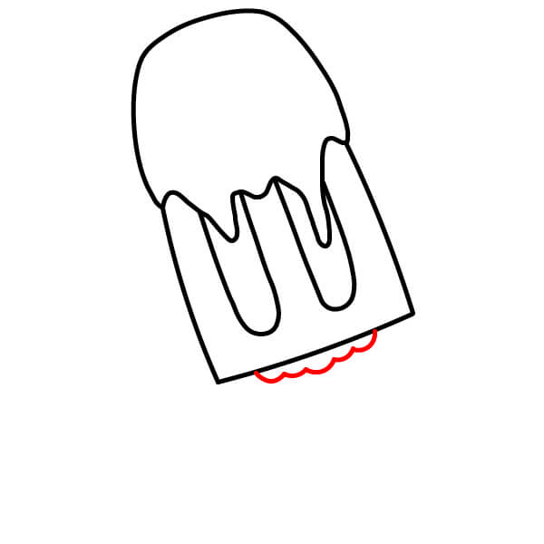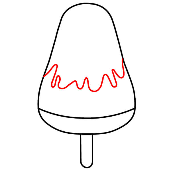 Piirrä mehujääpuikko. Vedä kaksi rinnakkaista viivaa alaspäin aaltoilevan viivan keskeltä ja yhdistä ne alhaalta pyöristetyllä viivalla.