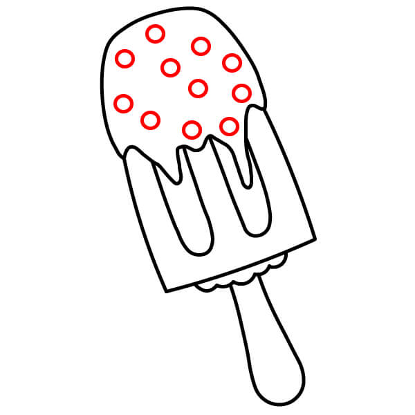 Lisää pieniä pyöreitä muotoja mehujään pyöristetyn yläosan päälle. Nämä esittävät suklaahippuja.