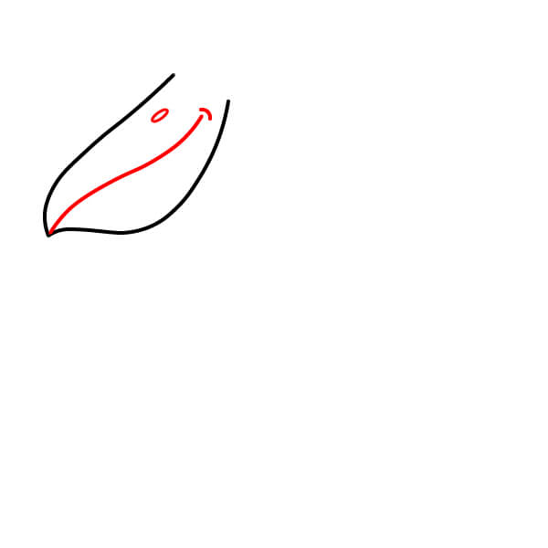 Piirrä pitkä, hieman kaareva muoto suljetulle nokalle. Lisää kärkeen pieni pyöristetty kaari. Piirrä nokan sisään vinoviiva erottamaan ylä- ja alaosa.