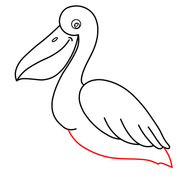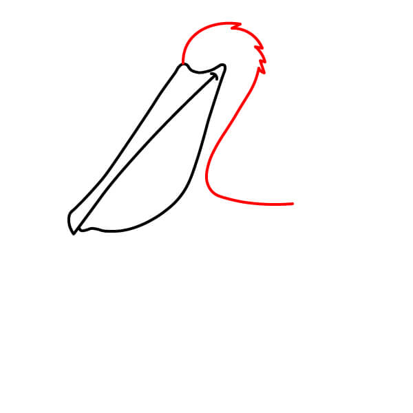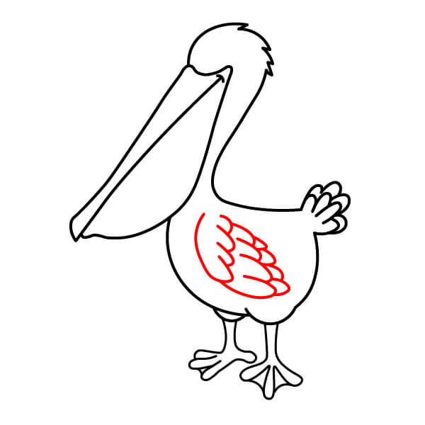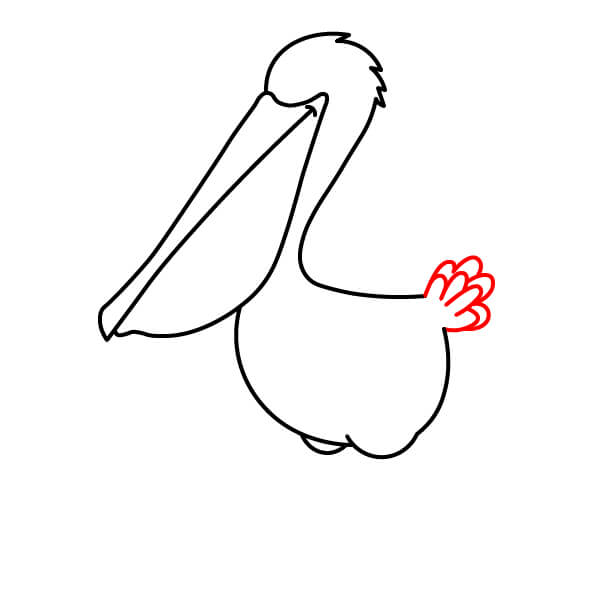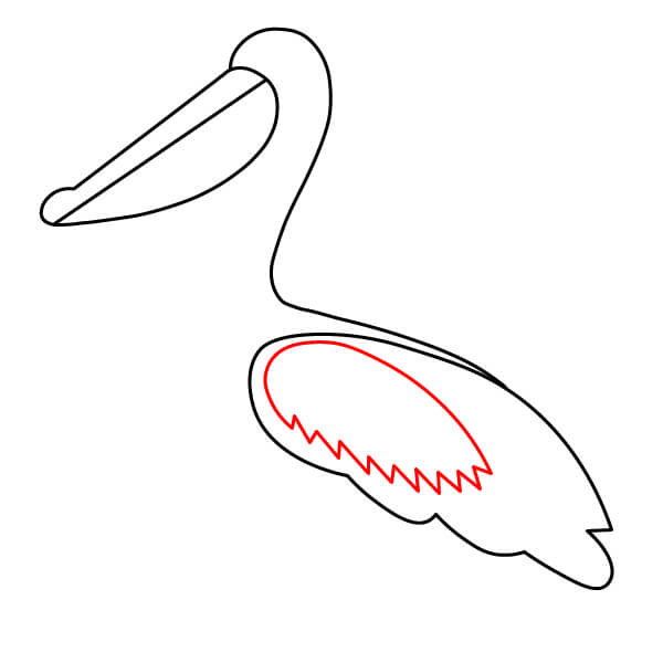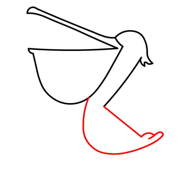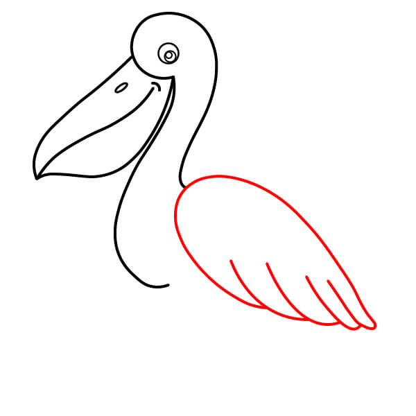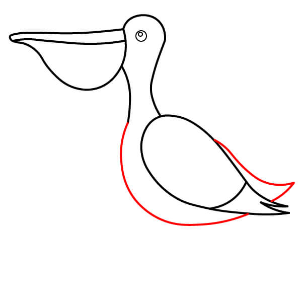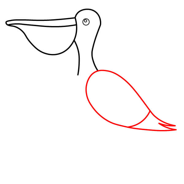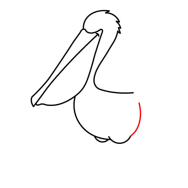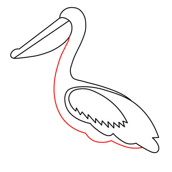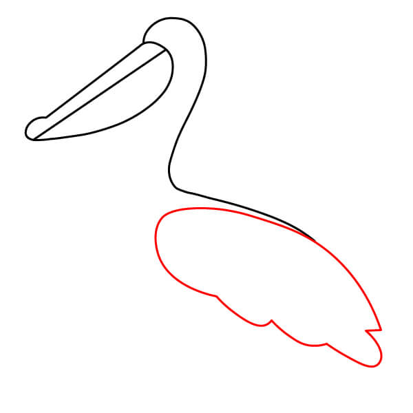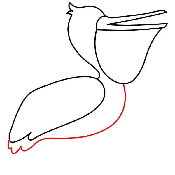 Piirrä niskan alaosasta (siitä, missä se liittyy kurkkupussiin) pitkä, kaartuva viiva alaspäin ja sitten taaksepäin muodostaen pelikaanin pyöreän vartalon. Lisää loppuun pieni sulkamainen kärki hännäksi.