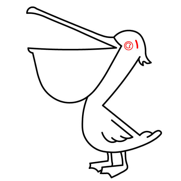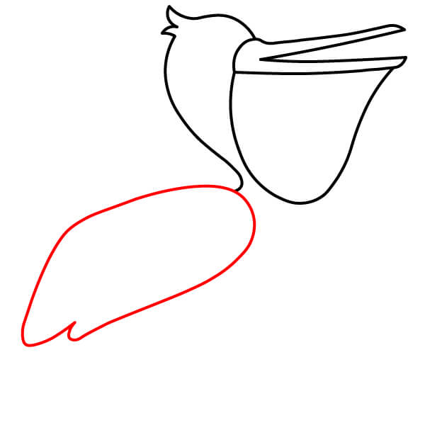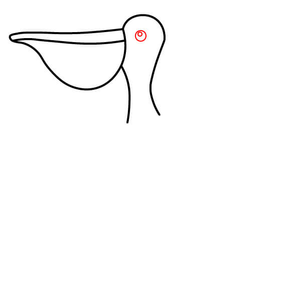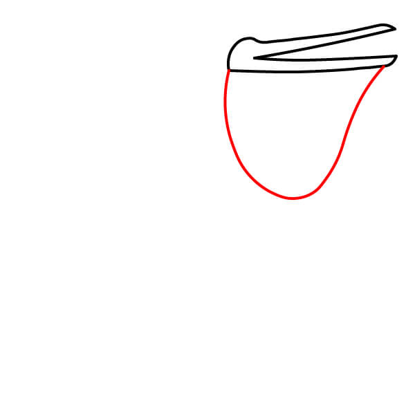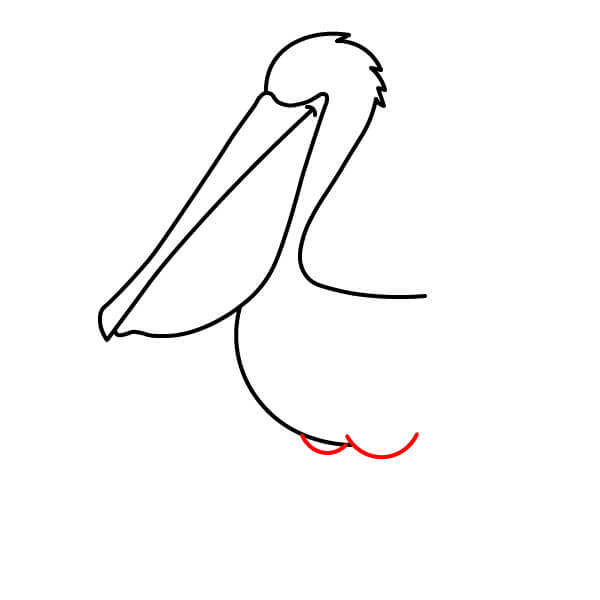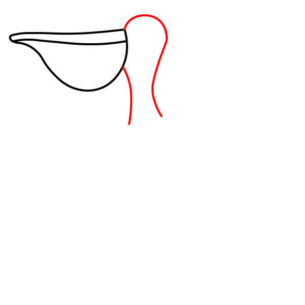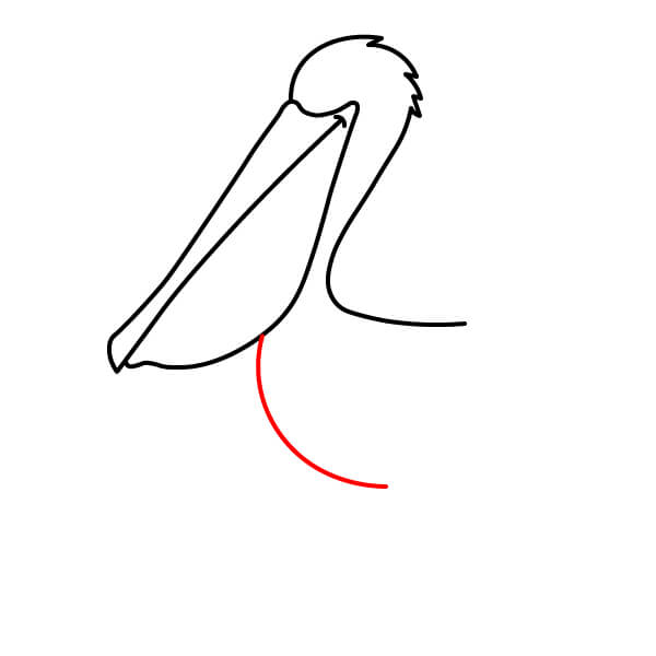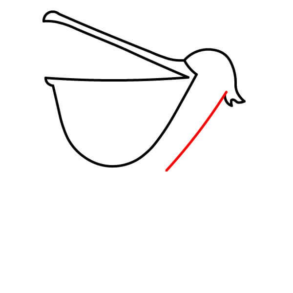Piirrä vastaava alaviiva avoimen nokan alaosaa varten, hieman kaarevana. Sen alle piirrä suuri, syvä U-muotoinen käyrä, joka yhdistyy nokkaan ja muodostaa tyypillisen kurkkupussin.