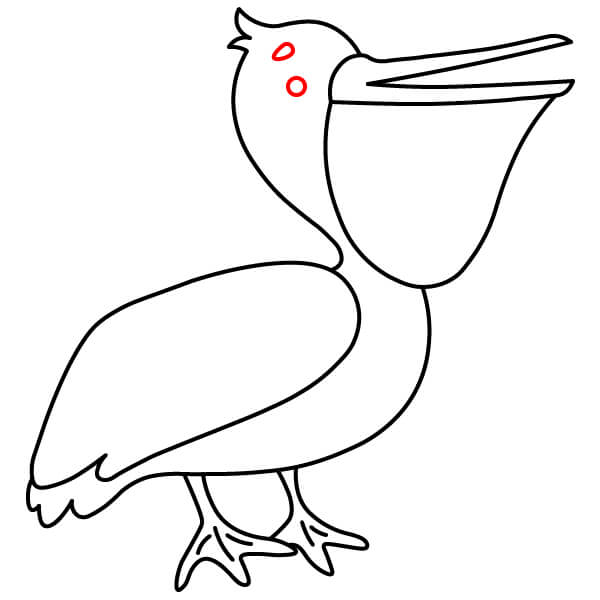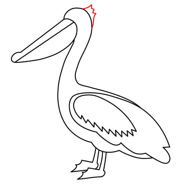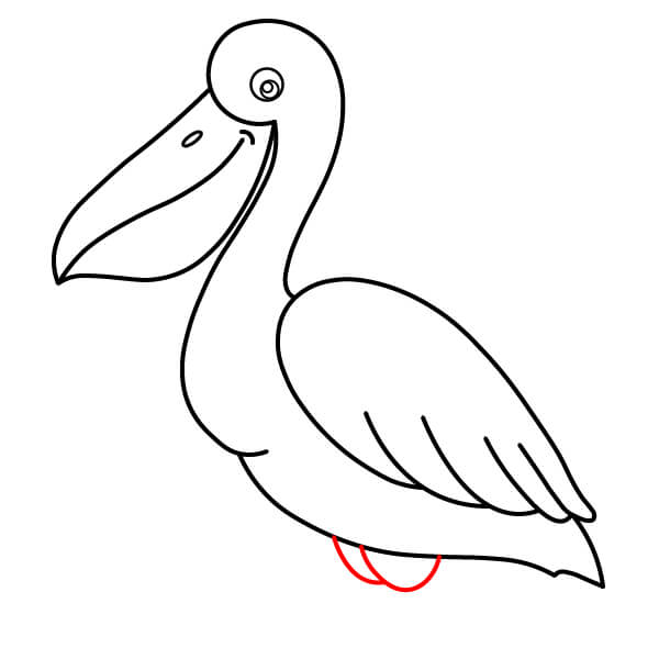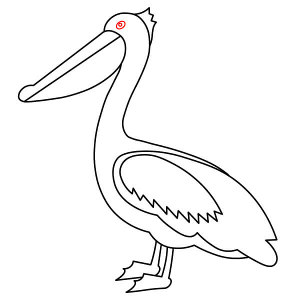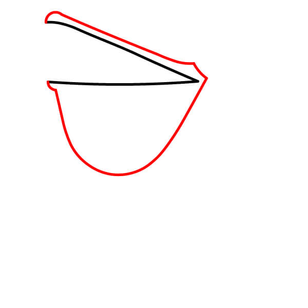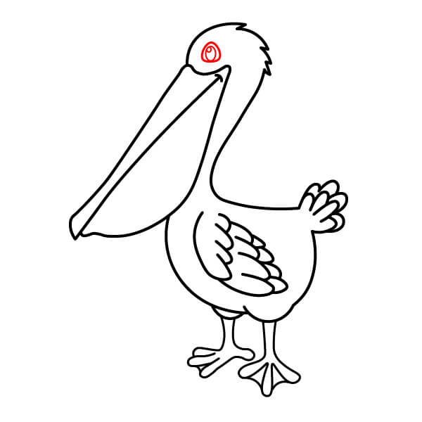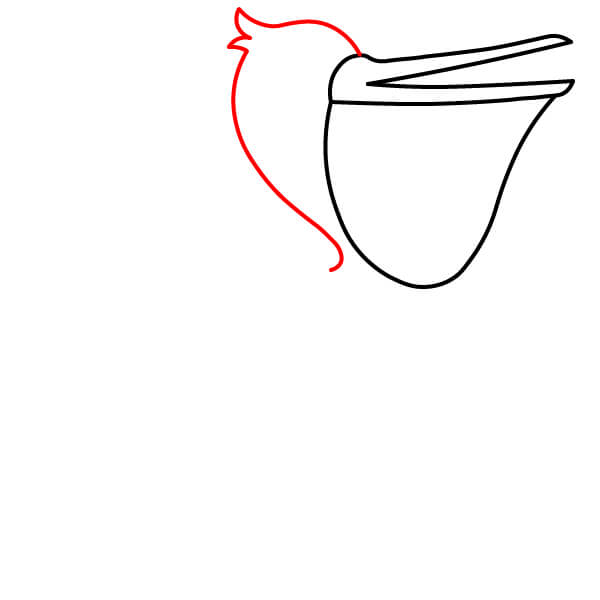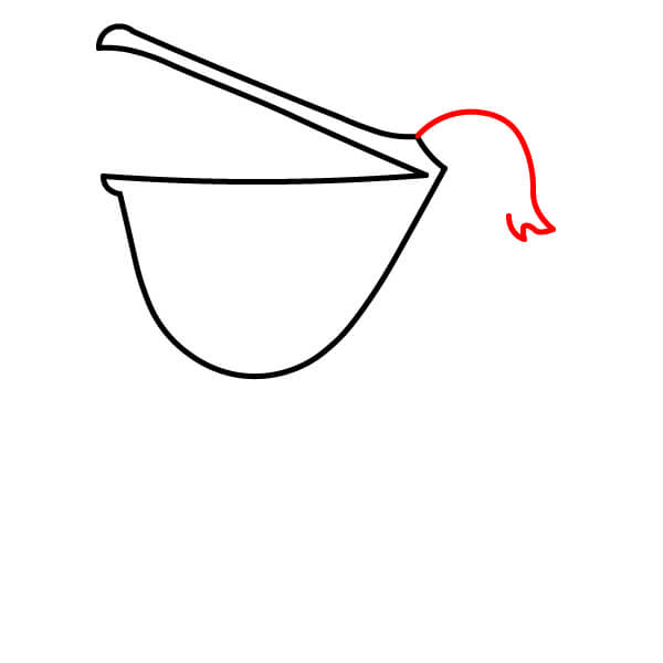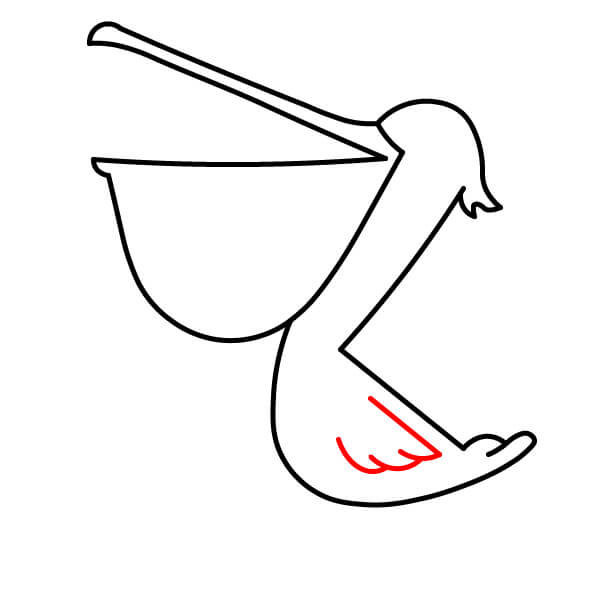 Piirrä vastaava alaviiva avoimen nokan alaosaa varten, hieman kaarevana. Sen alle piirrä suuri, syvä U-muotoinen käyrä, joka yhdistyy nokkaan ja muodostaa tyypillisen kurkkupussin.
