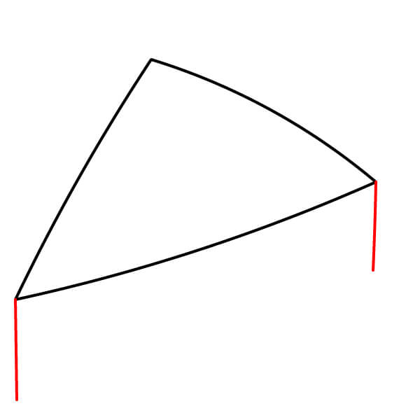 Vaihe 1: Piirrä kolmio, jonka yksi sivu on kaareva. Tämä muodostaa piirakkapalan perusmuodon.