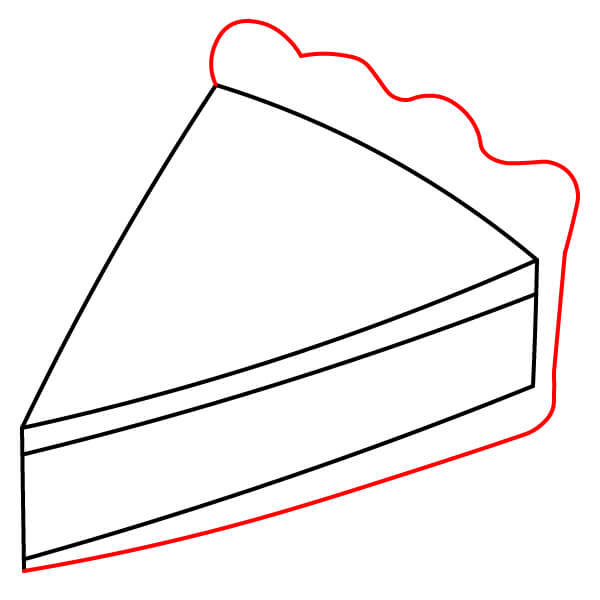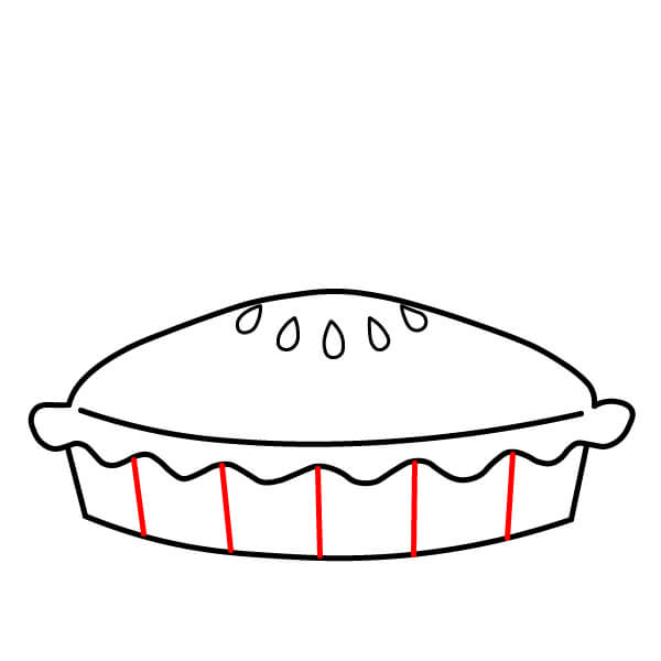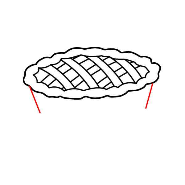 Vaihe 3: Piirrä kaksi vaakasuoraa, kaarevaa viivaa muodostamaan piirakan täyte- ja kuorikerrokset. Ensimmäinen viiva yhdistää kaksi pystysuoraa viivaa, ja toinen piirretään aivan piirakan yläosan alle.