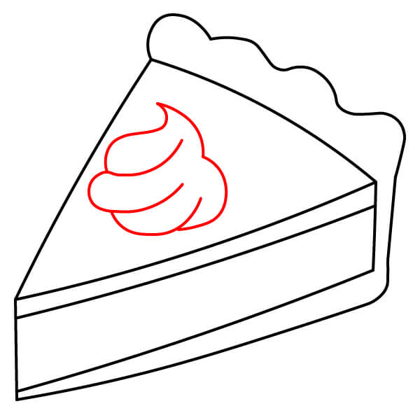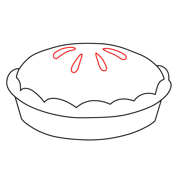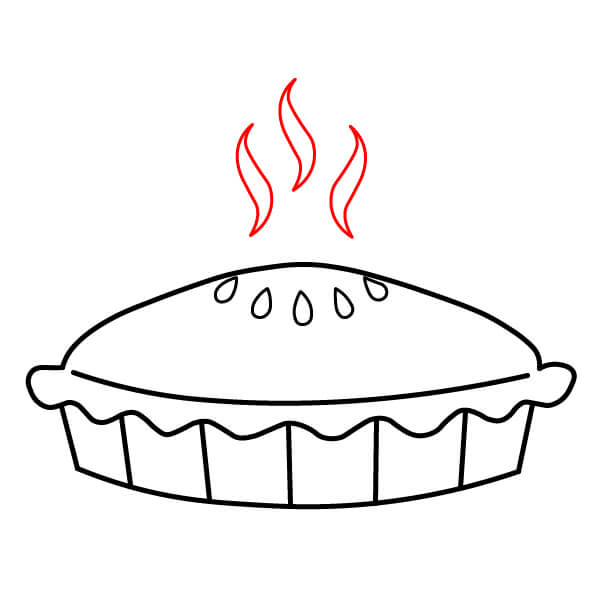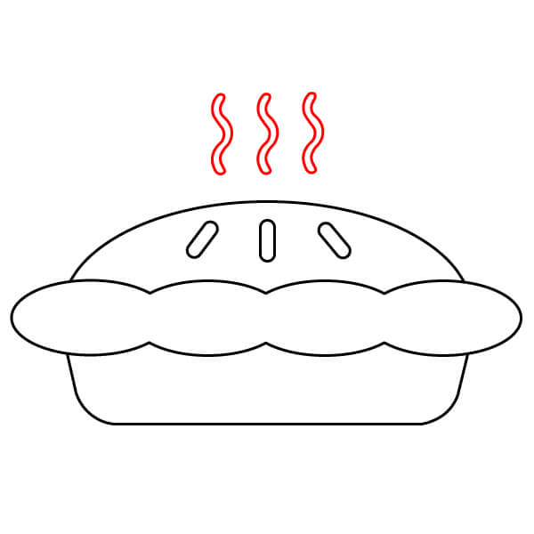 Vaihe 5: Piirrä piirakan yläpuolelle kolme aaltoilevaa S-muotoa. Ne kuvaavat kuumasta piirakasta nousevaa höyryä.