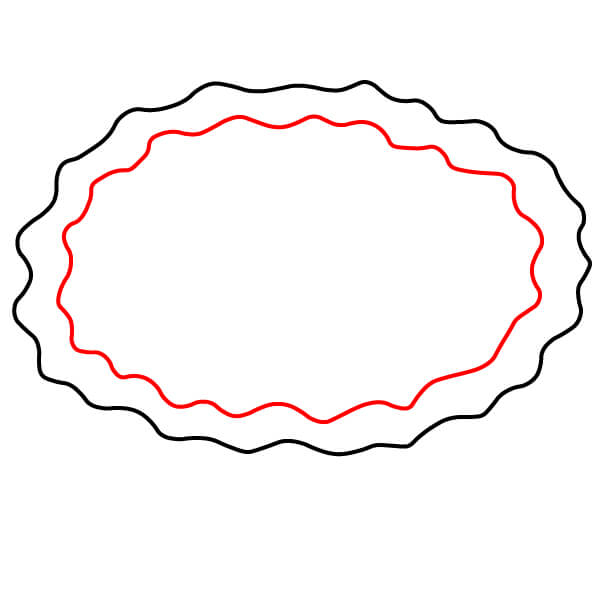Vaihe 2: Piirrä sen sisään pienempi samanlainen aaltoileva soikio. Tämä muodostaa kuoren sisäreunan.