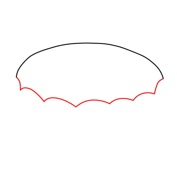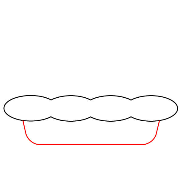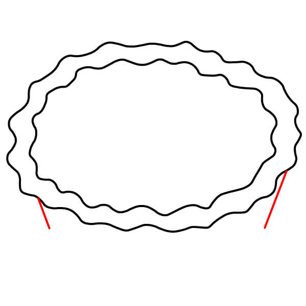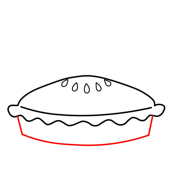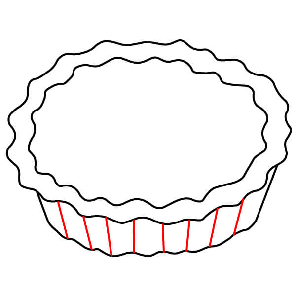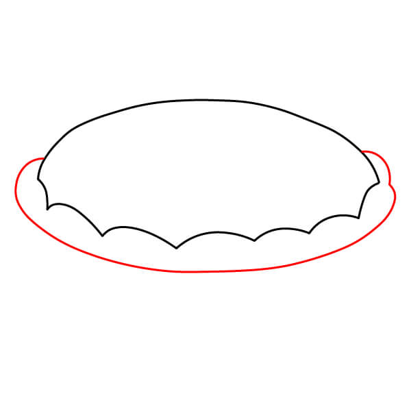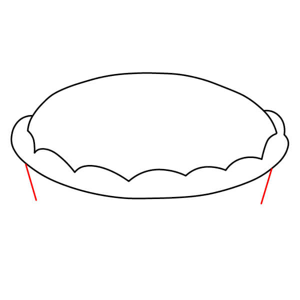 Vaihe 3: Piirrä ulomman soikion alimmista kohdista kaksi lyhyttä, hieman vinoa viivaa alaspäin. Ne muodostavat piirakkavuoan sivut.