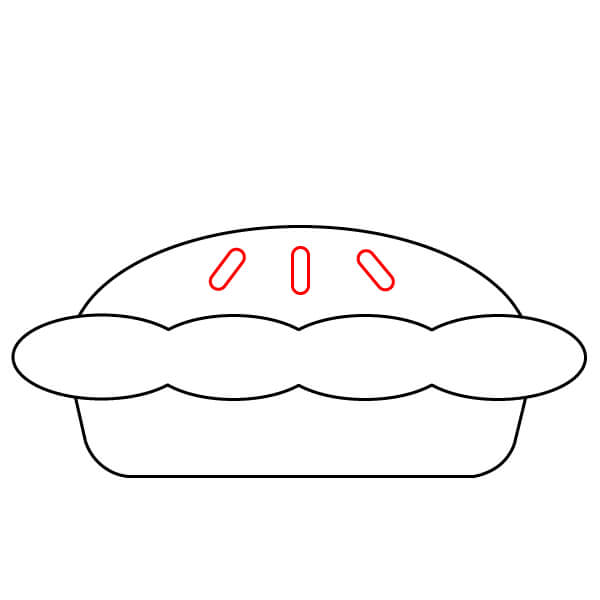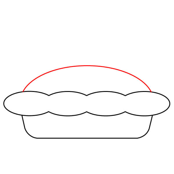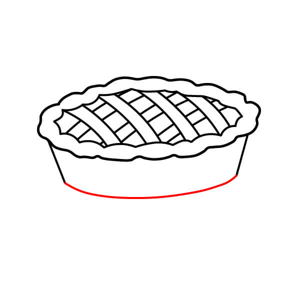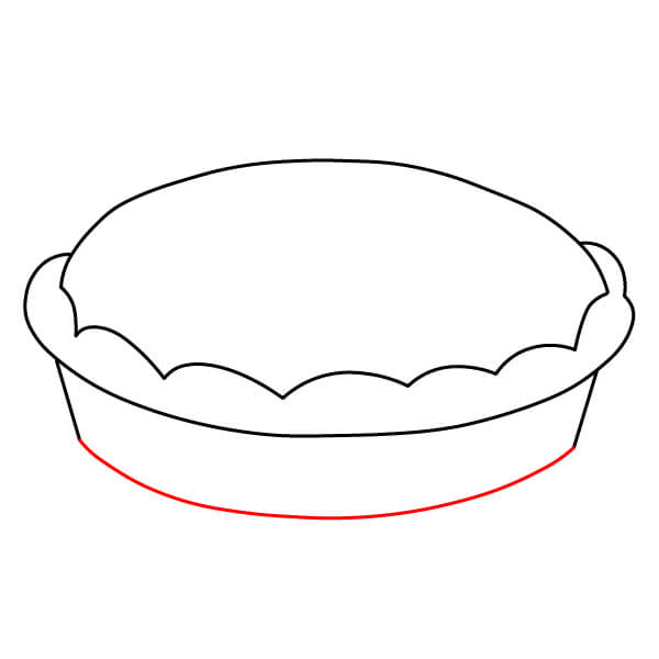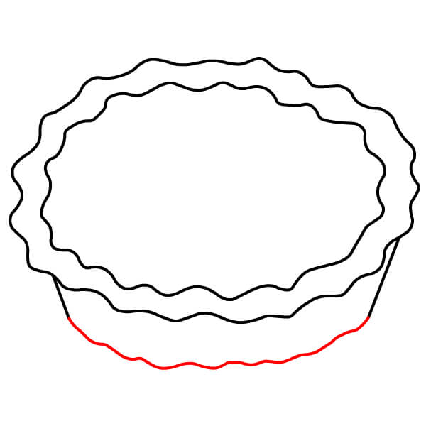 Vaihe 3: Piirrä kaareva viiva yhdistämään aaltoilevan viivan päät. Tämä muodostaa piirakkavuoan yläreunan. Lisää sitten molempiin päihin pienet puolikaaret koristeeksi.