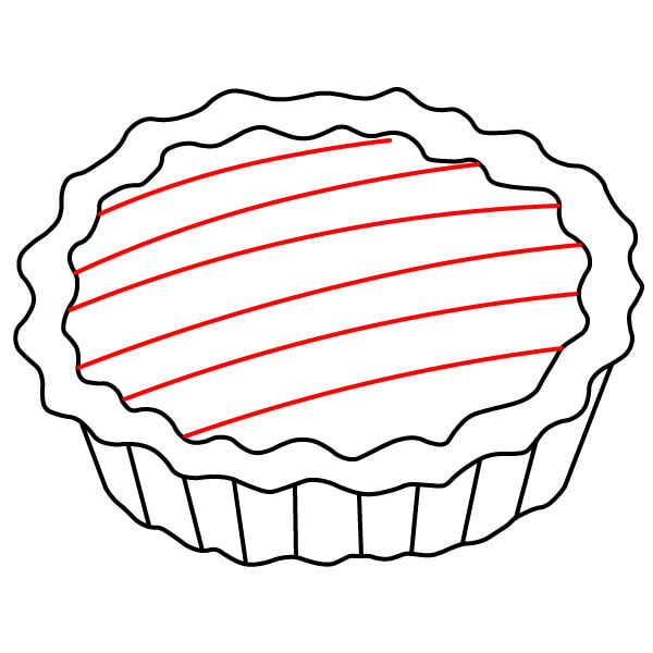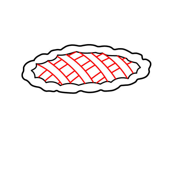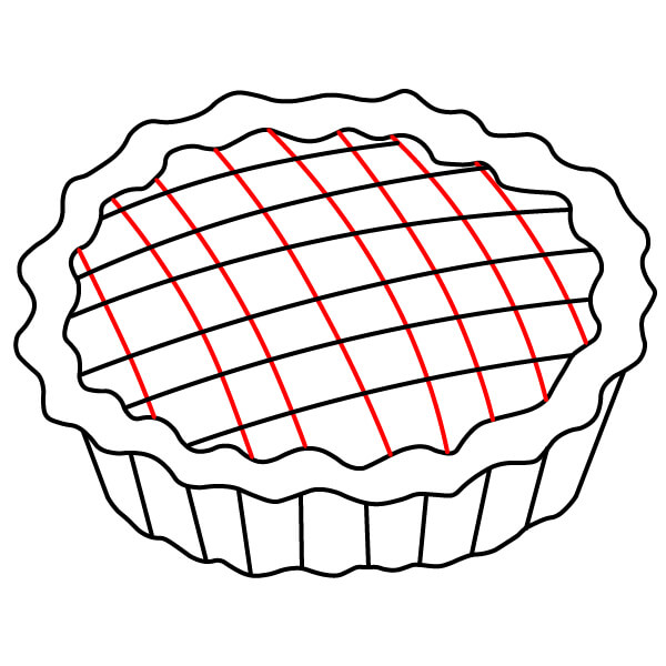 Vaihe 3: Piirrä useita rinnakkaisia vinoviivoja piirakan päälle. Ne muodostavat ristikkokuoren ensimmäisen suunnan. Piirrä sitten toinen sarja vinoviivoja vastakkaiseen suuntaan, jotta syntyy kudottu ristikkokuvio.