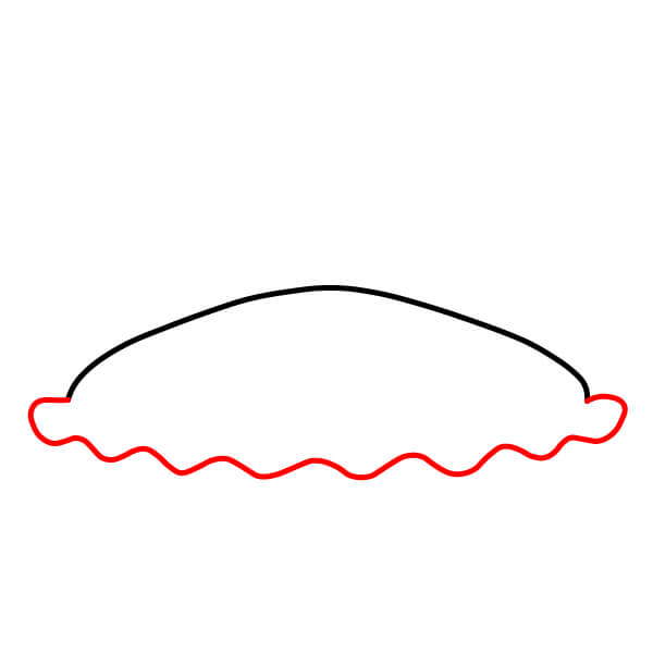 Vaihe 2: Piirrä kaaren alle aaltoileva viiva, joka yhdistää kaaren päät. Tämä muodostaa kuoren röpelöisen reunan.