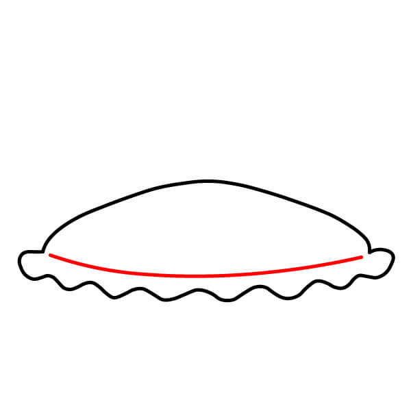 Vaihe 2: Piirrä hieman kaareva viiva, joka yhdistää kuoren päät. Tämä muodostaa piirakan pohjan.
