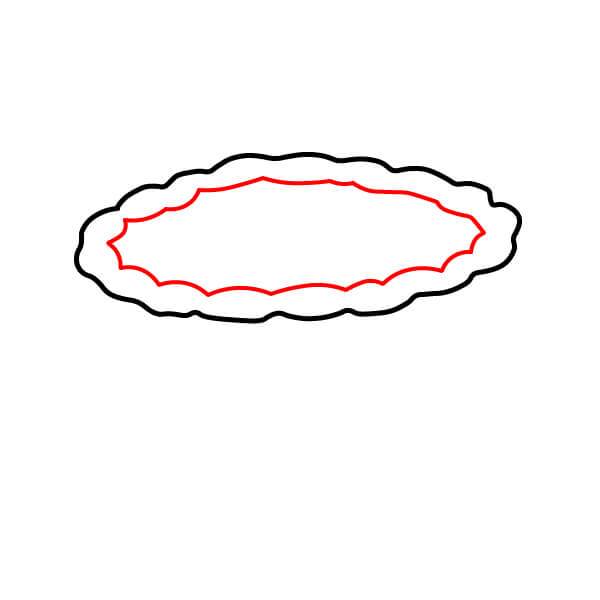 Vaihe 2: Piirrä ensimmäisen sisään pienempi, samanlainen aaltoileva soikio. Tämä muodostaa kuoren sisäreunan.