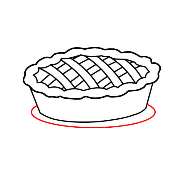 Vaihe 6: Piirrä vuoan alle leveä, litteä soikio. Tämä on lautanen, jolla piirakka on.