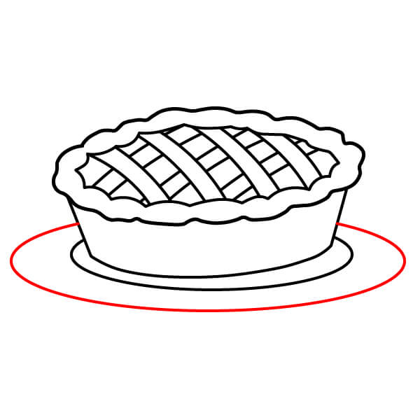 Vaihe 1: Piirrä leveä, hieman litistetty soikio, jossa on aaltoileva reuna. Tämä on piirakan yläkuori.