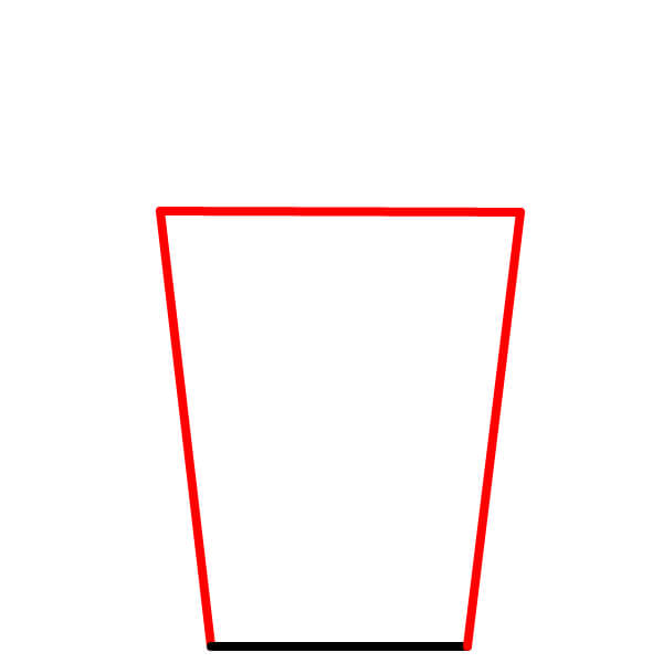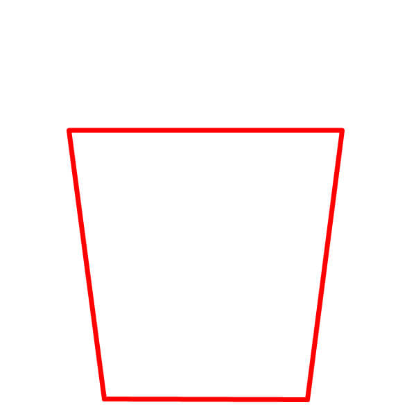 Aloita piirtämällä popcorn-ämpärin perusmuoto. Sen pitäisi näyttää puolisuunnikkaalta, jossa on tasainen pohja ja hieman leveämpi aukko yläosassa.