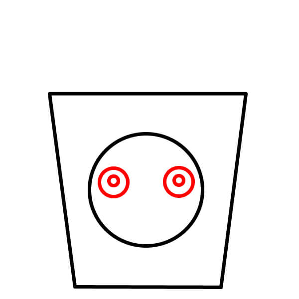 Piirrä suuren ympyrän sisälle kaksi pienempää ympyrää silmiksi. Piirrä kummankin sisälle vielä pienempi ympyrä pupilleiksi.