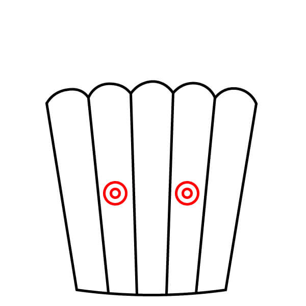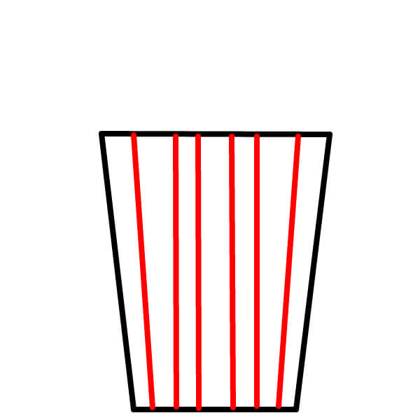 Piirrä useita pystysuoria viivoja ämpärin sisälle yläreunasta hieman jalustan yläpuolelle. Nämä muodostavat popcorn-ämpärin raidat.