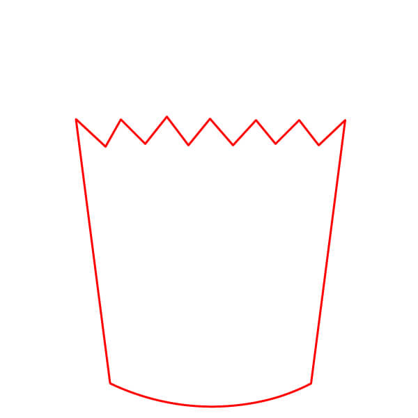 Aloita piirtämällä popcorn-astian perusmuoto. Se muistuttaa puolisuunnikkaan muotoa, mutta alareuna on hieman kaareva ja yläreunassa on siksak-viiva, joka muodostaa teräviä huippuja ja laaksoja.