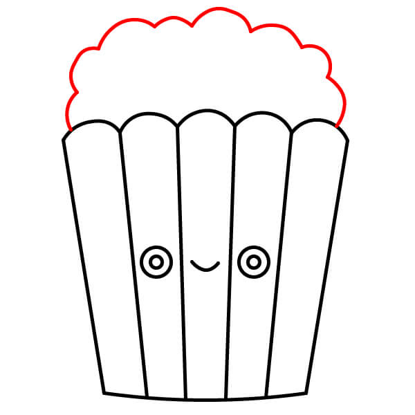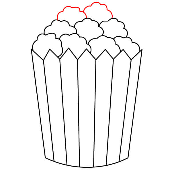 Aloita piirtämällä siksak-muotoisen yläreunan yläpuolelle useita epäsäännöllisiä, pilvimäisiä muotoja. Ne ovat ensimmäiset popcornin palat.