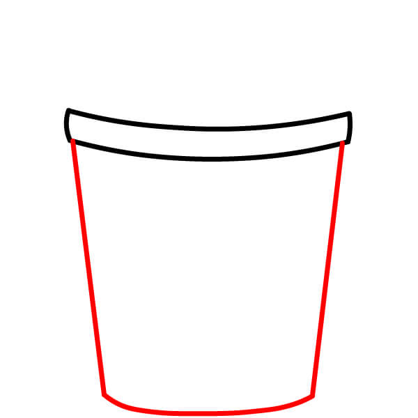 Piirrä kaksi viivaa alaspäin ja hieman ulospäin kuvion kahdesta alakulmasta, jonka piirsit vaiheessa 1. Yhdistä sitten näiden viivojen alapäät kaarevalla viivalla muodostaaksesi ämpärin pohjan.