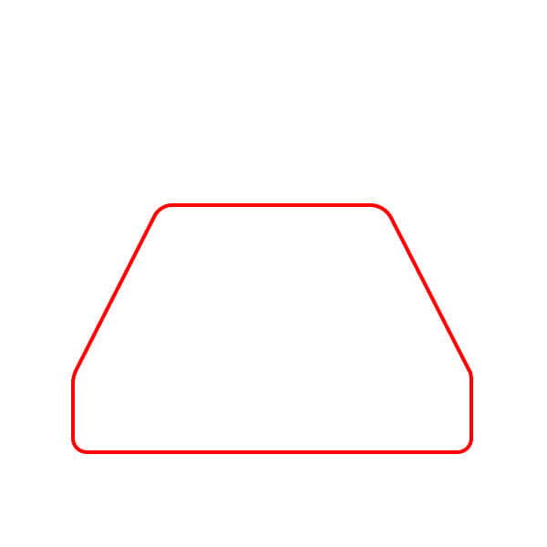 Aloita piirtämällä puhelimen runko. Piirrä pyöristetty puolisuunnikas – leveämpi alhaalta ja kapeampi ylhäältä, hieman pyöristetyillä kulmilla.