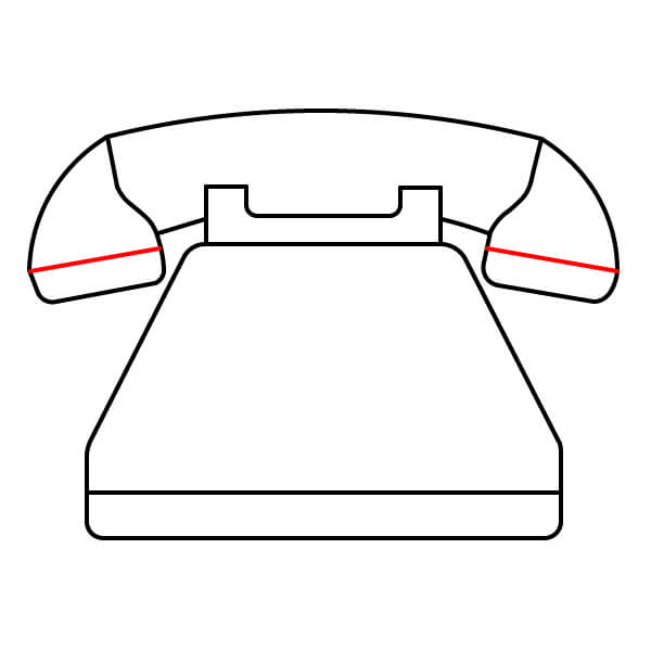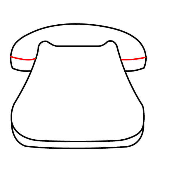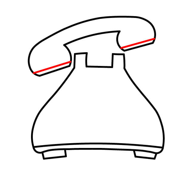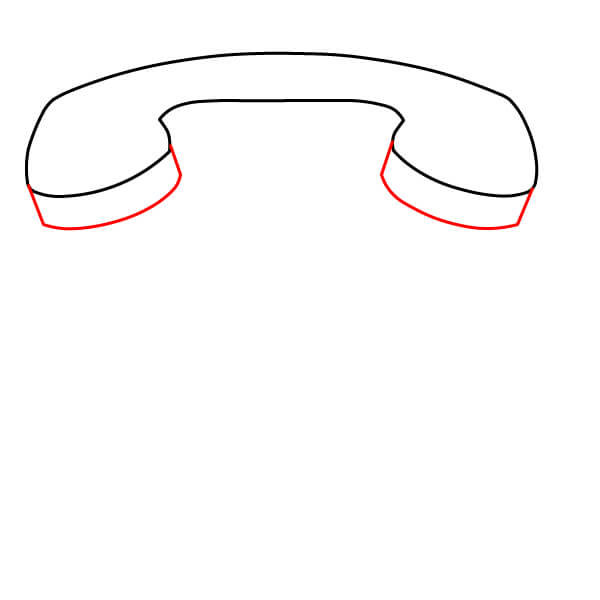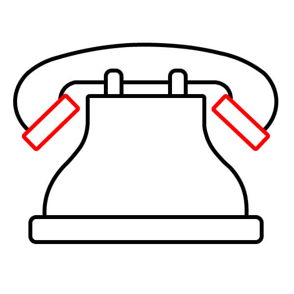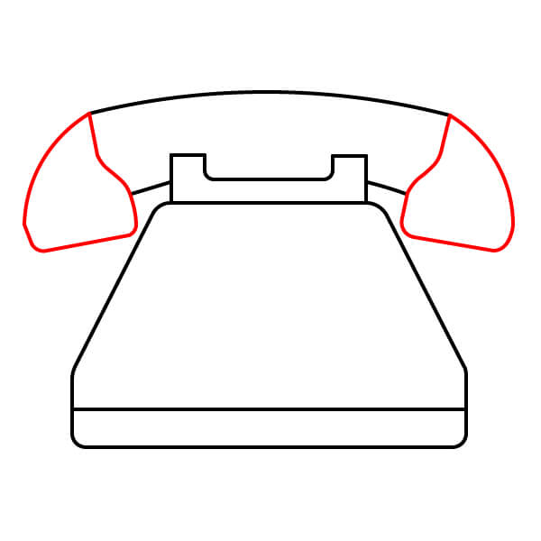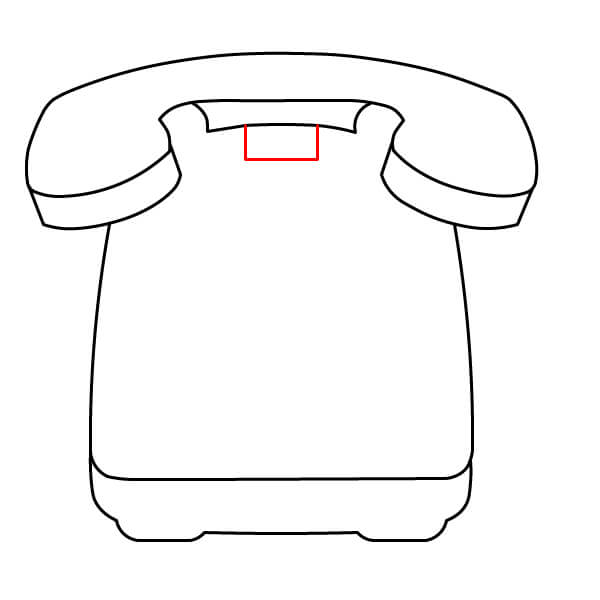 Piirrä kaksi pientä, neliönmuotoista kuulokemikrofonitelinettä (koukut, joiden varaan luuri lepää) puhelimen rungon yläreunan keskelle ja yhdistä ne pienellä vaakasuoralla viivalla.